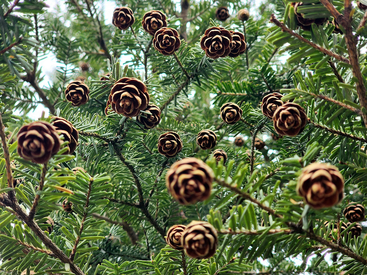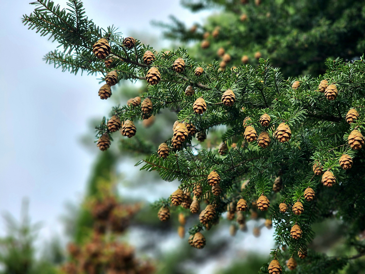 솔송나무는 전나무과 안에서도 ‘헴록(hemlock)’이라 불리는 그룹에 속하지만, 북미의 독초 ‘포이즌 햄럭’(Conium maculatum)과는 전혀 다른 식물입니다. IUCN은 이 종을 “Near Threatened(준위협)”로 평가하며, 기후변화와 서식지 파편화가 앞으로의 생존에 영향을 줄 수 있다고 지적합니다.