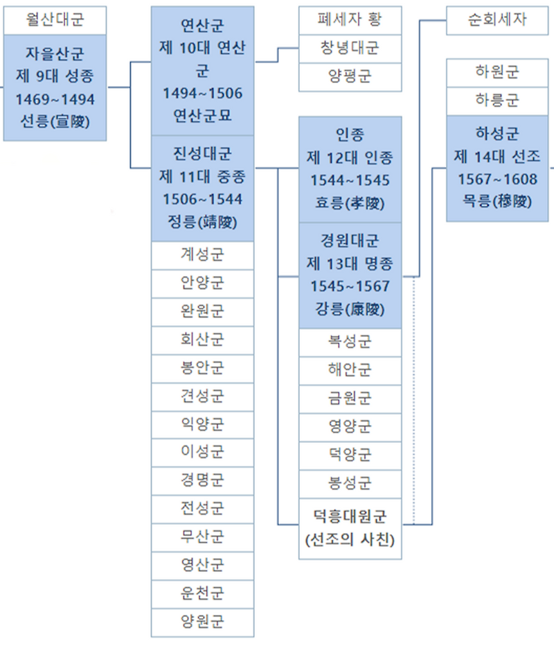 연산군의 아들들은 대부분 중종반정 직후 사사되거나 정치적 제거의 대상이 되었습니다. 이는 연산군의 피가 이어지는 것을 두려워한 신하들의 결정으로, 그의 가계는 사실상 단절되었습니다.