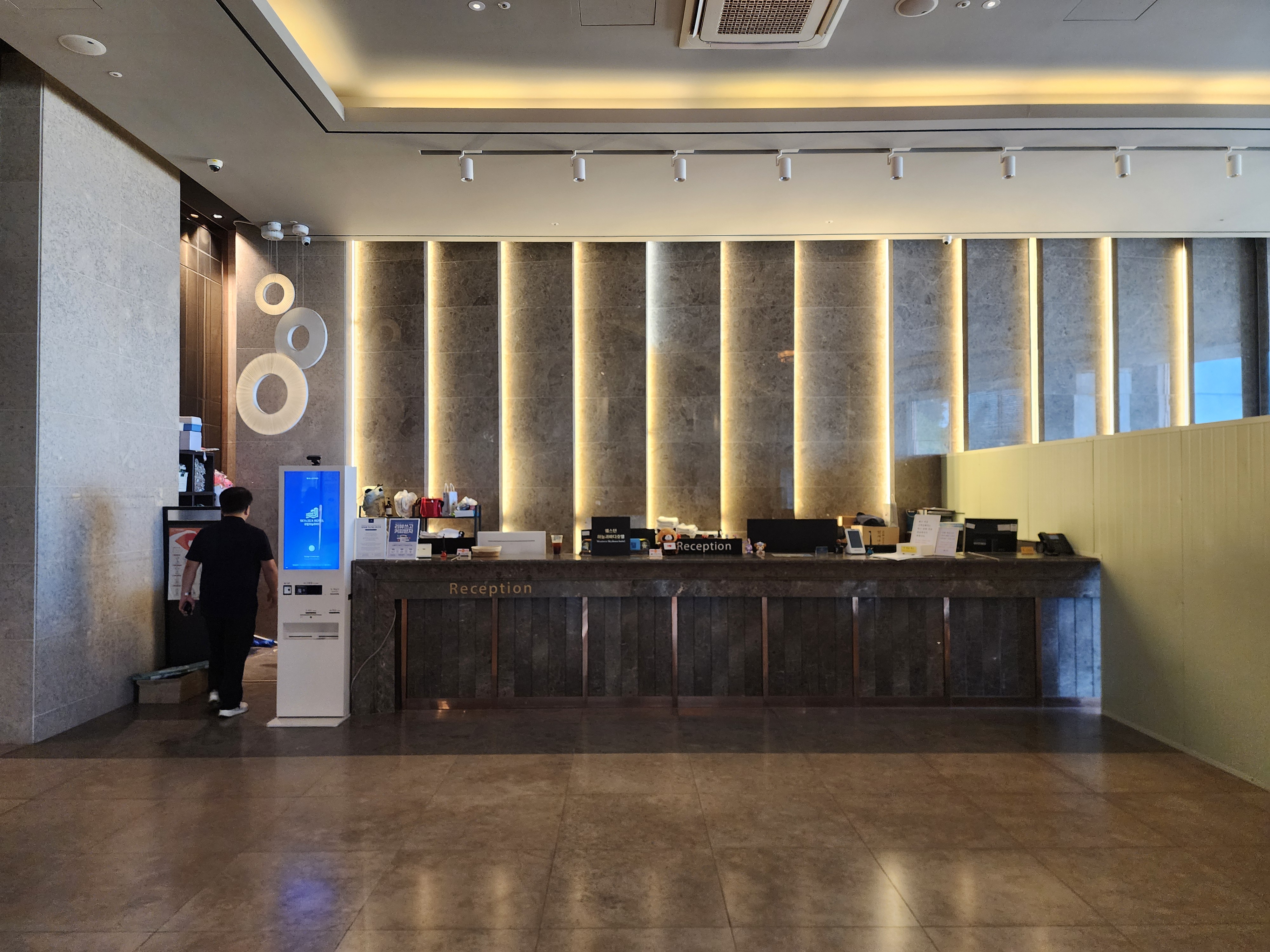 • 그레이스호텔 - 사진처럼 리셉션 좌측에 무인 키오스크가 있어 카드 발급·결제가 가능.