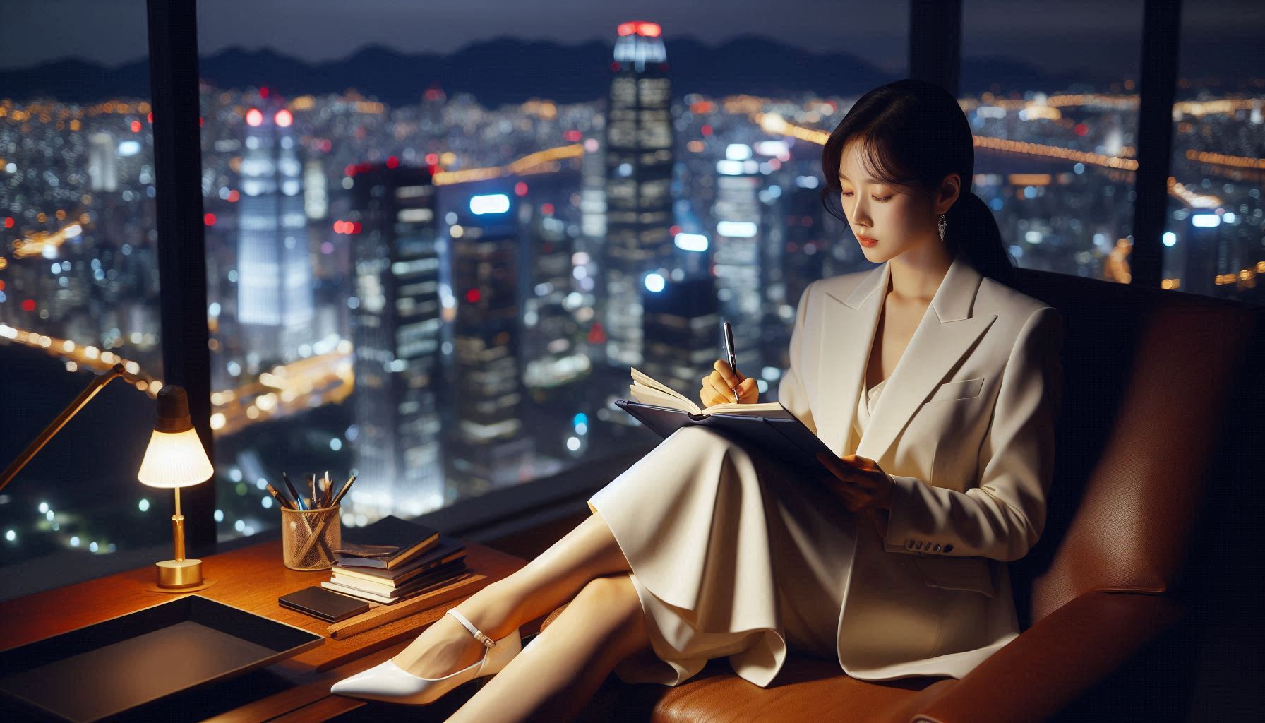 • 제나일 블랙우드 만년필 + 네이비 잉크 → 고급스러운 분위기